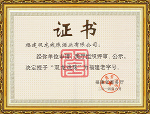 雙龍戲珠酒業(yè)作為福建省白酒研發(fā)中心,榮獲福建老字號產品、福建省農業(yè)產業(yè)化龍頭企業(yè)、福建東南窖酒文化館、科技小巨人領軍企業(yè),國家守合同、重信用單位等榮譽。